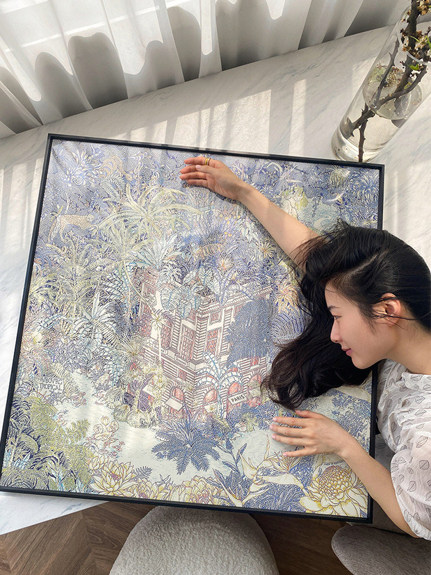 And also a framed old silk scarf of the Hermès atelier in 5 Rue Du Faubourg which took 40-hours to restore.